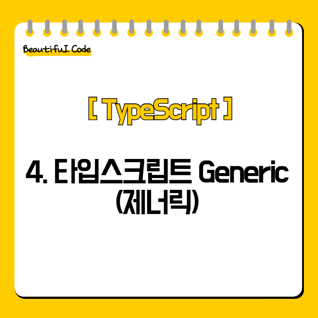 💡 꺽쇠 (<>) 기호는 변수명, 함수명 앞에 사용됩니다. 그리고 제너릭 이름은 반드시 T 일 필요는 없습니다.